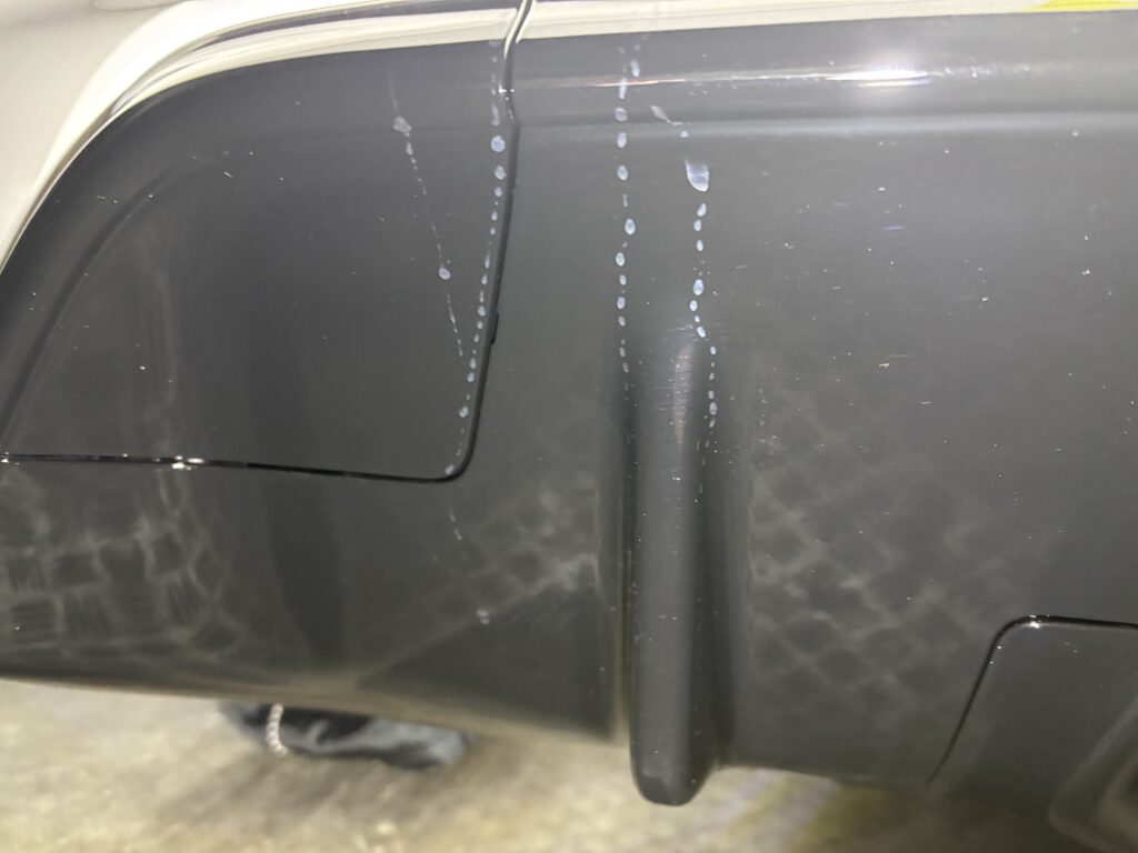 新車直納でのご入庫にも関わらず、細かな線キズや塗装のクスミ、水垢が見受けられる状態でありました。